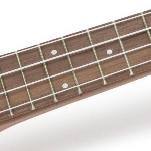 | A parte entre o cabeça e o braço do ukulele, onde as cordas se apoiam, é chamada de pestana. A pestana controla o espaçamento da corda, sua distância da borda do braço e sua altura acima do primeiro traste. As pestanas podem ser fabricadas com uma variedade de materiais, mas geralmente são feitas de plástico ABS ou osso. |